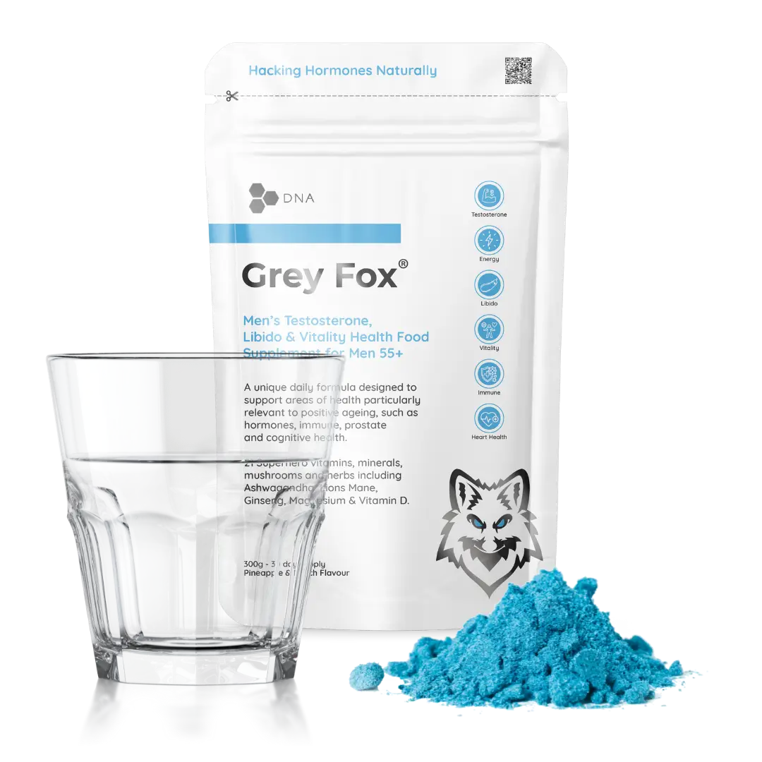 Grey Fox® by DNA is a natural testosterone supplement for men 55+, supporting vitality, libido, prostate health, and immune strength. Each tasty daily drink delivers the power of 32 vitamin pills—no need for multivitamins. Just clean, effective support to help you feel sharp, strong, and fully charged.